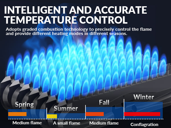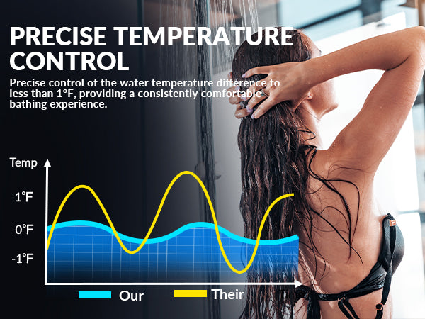 - 【Accurate & Consistent Temperature Control】– Equipped with advanced water servo technology and built-in temperature sensors, this tankless natural gas water heater delivers precise regulation of water flow and gas input, keeping temperature fluctuations within ±1℉. The four-stage combustion system ensures steady, reliable performance year-round—whether you're facing freezing winters or scorching summers.