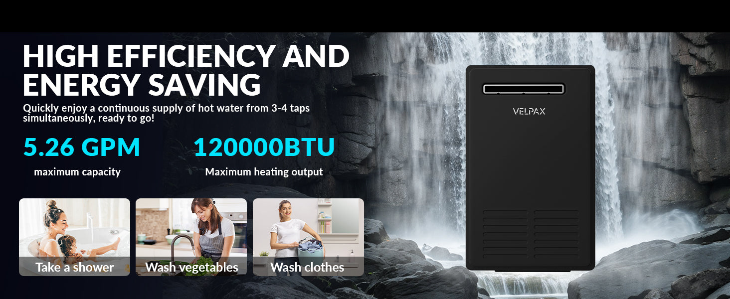 - 【Efficient & Energy-Saving】– With a high-performance output of 120,000 BTU per hour, this 5.26 GPM instant natural gas water heater delivers on-demand hot water for 3–4 fixtures at the same time, making it an ideal choice for whole-house use. Advanced combustion technology helps reduce gas consumption and lowers operational noise, offering a more efficient and quieter experience for your home.