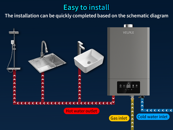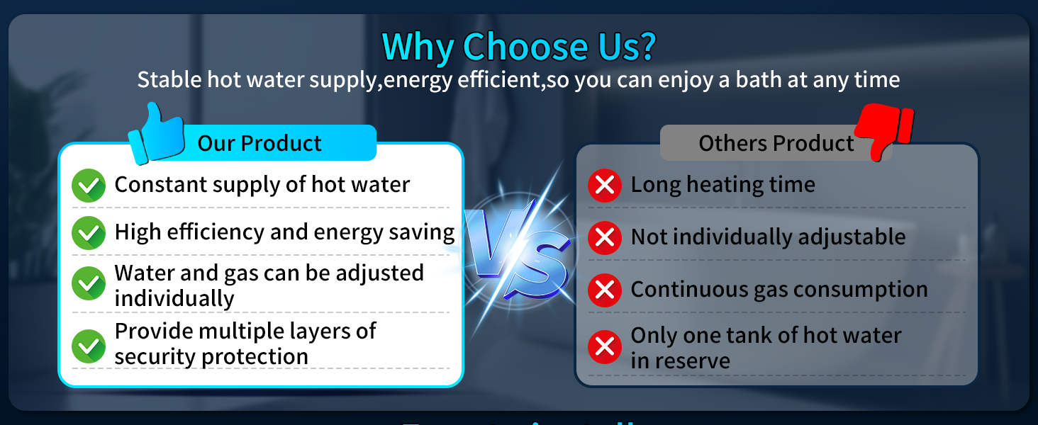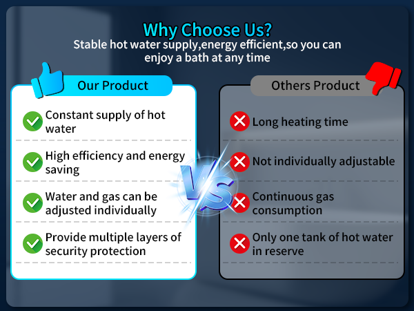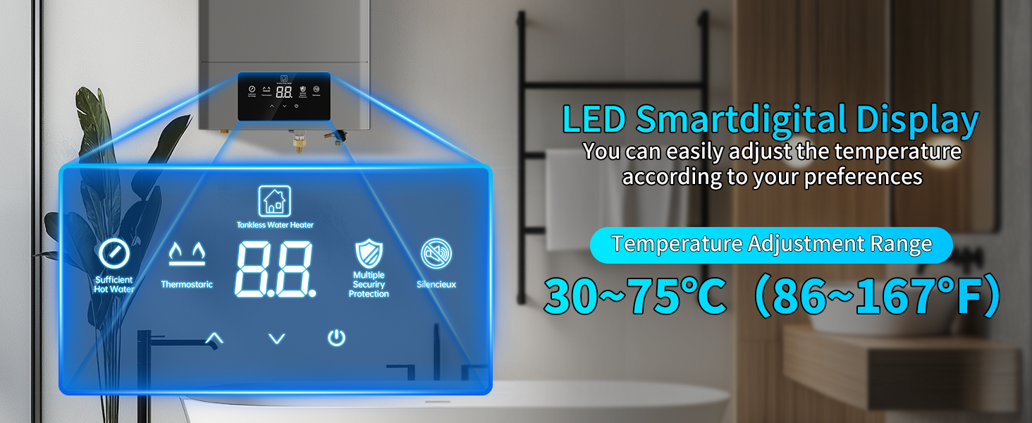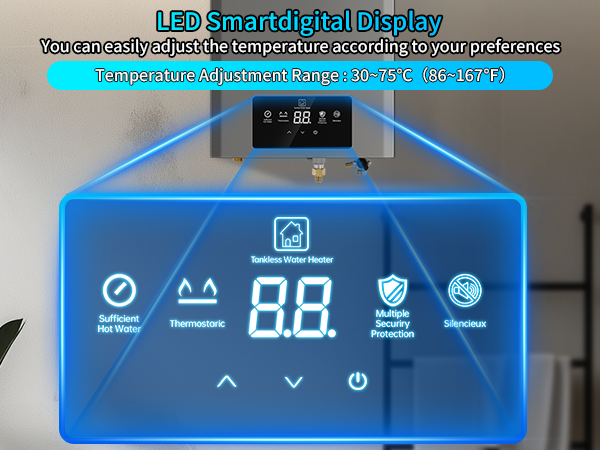 - 【Quality Material】-This of ours tankless water heater Crafted from stainless steel, exhibits high temperature resistance and corrosion resistance. It also features a built-in oxygen-free copper water tank,Powerful DC motor is more stable than AC motor No noise, ensure stable combustion.With LED smartdigital display effortlessly adjust the temperature between 30°C-75°C (86°F-167°F) according to your preferences.