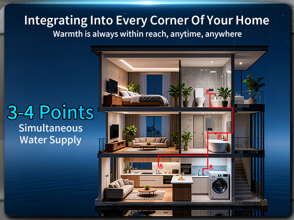 - 【Widely Application 】-Save over 50% of available space compared to tank water heater.also compact and easy to install, saving you valuable space in your home,for 3-4 points simultaneous water supply for bathroom and kitchen hot water demand.Great for home,any size home, even for simultaneous uses at multiple fixtures.