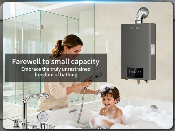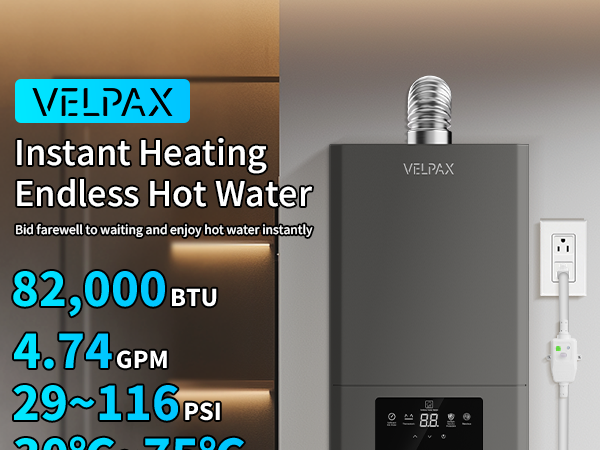 - 【Super High Efficiency】- The tankless water heaters Energy efficient with plenty of hot water, Save time with hot water whenever and wherever you need it, They don't produce the standby energy losses associated with storage water heaters. 4.74 GPM Instant gas tankless water heater ,Maximum power output 82,000 btu/hour.Equipped with a newly upgraded downward-mounted DC variable frequency fan, it achieves stepless frequency conversion from 500 to 7000 RPM, delivering intelligent airflow and oxygen-enriched efficiency to ensure complete combustion,significantly boosting thermal efficiency.