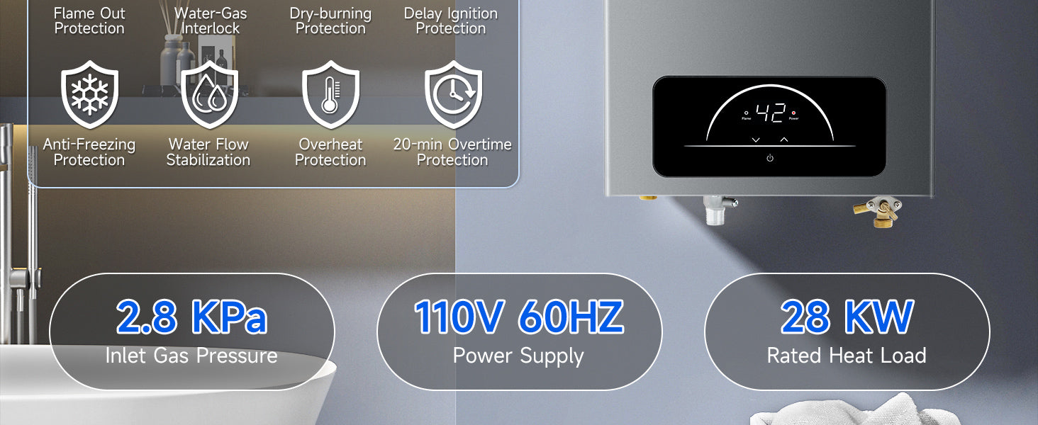 • 【Efficient & Energy-Saving】– With a high-performance output of 68,000 BTU per hour, this 4.74 GPM instant propane water heater provides on-demand hot water for 2–3 points of use simultaneously, making it ideal for bathrooms and kitchens. The advanced combustion technology minimizes gas consumption and reduces operational noise for a more efficient and quieter experience.