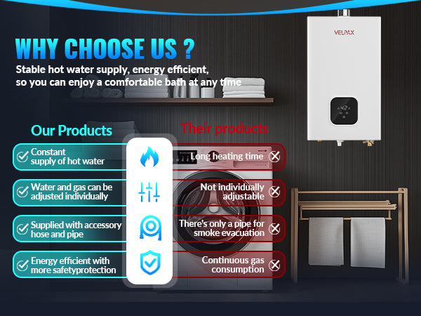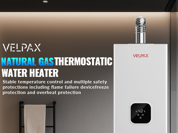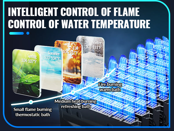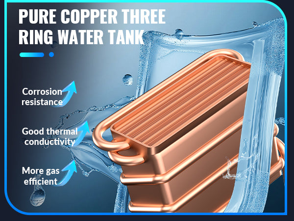 - 【Premium Quality & Durability】– Crafted with a stainless steel body for superior temperature and corrosion resistance, this propane water heater is built to last. The oxygen-free copper water tank ensures minimal heat loss and an extended service life. The LED smart digital display allows for easy temperature adjustments between 35°C (95°F) and 65°C(149°F), giving you precise control over your hot water needs.