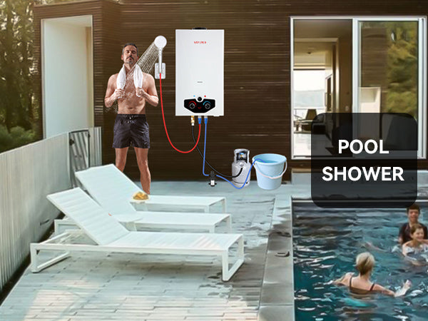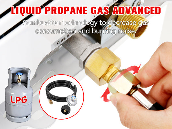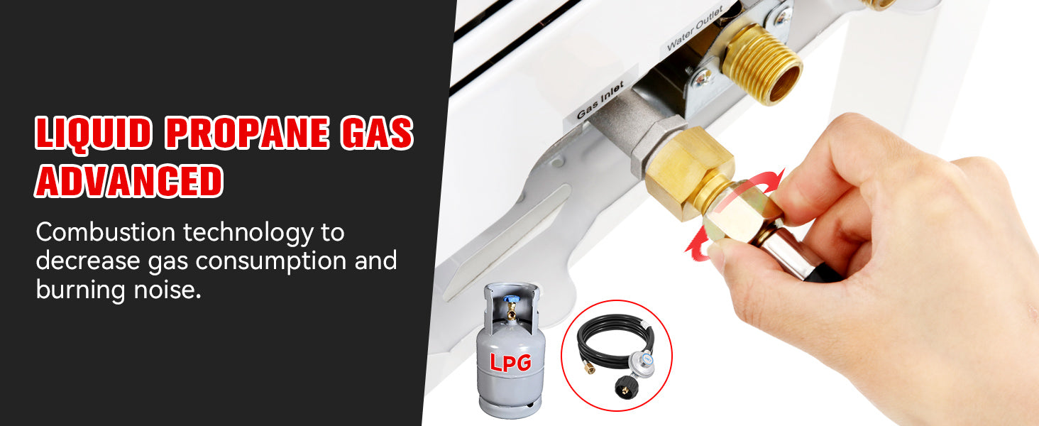- 【Propane Water Heater】 - This tankless water heater includes a CSA-approved regulator and multiple safety features such as a flame failure device, anti-freeze protection, and overheating protection. It can be used with 2GPM water pump, Comes with 2 pieces of extension hose and fittings,your don't need to buy extra accessories. With a high-performance output of 81888 BTU per hour, it can deliver 3.18 gallons of hot water per minute, with a maximum temperature increase of 167°F, specifically designed for use with propane (LPG).