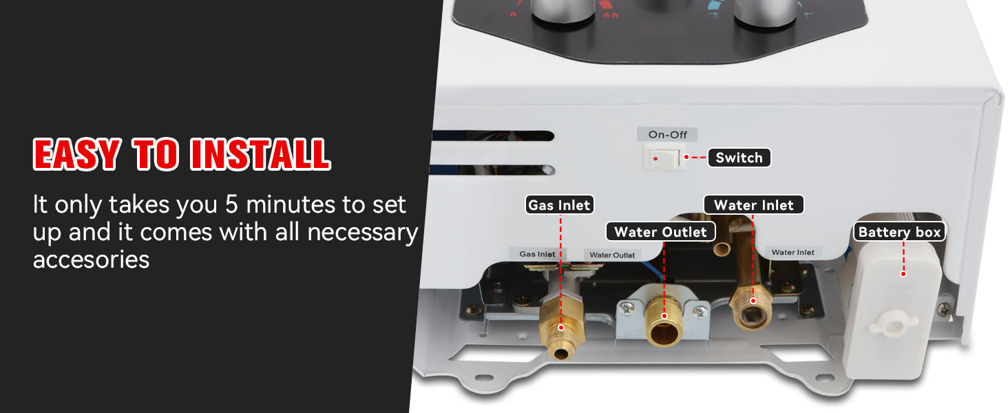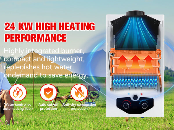 - 【Efficient & Energey Saving】-The on demand hot water heater propane exchanger and main burner are desinged with advanced combustion technology to decrease gas consumption and burning noise.Maximum power output 68000btu/hour, you will get instant endless hot water easily wherever you are.Compact and lightweight structure with 11.5% energy saving technology,so you can get more hot water for less money.