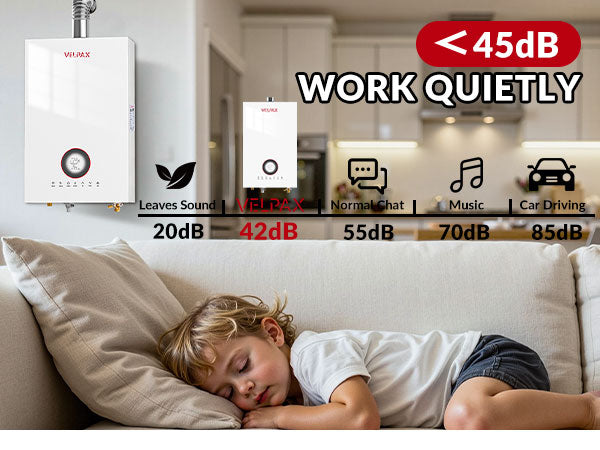 - 【Efficient & Energy Saving】- The 4.76 GPM Instant Propane Water Heater features a maximum power output of 96,000 BTU/hour, providing on-demand hot water for 2-3 points of simultaneous water supply to meet bathroom and kitchen hot water demand. This Propane Water Heater’s heat exchanger and main burner are designed with advanced combustion technology, which effectively decreases gas consumption and reduces burning noise.