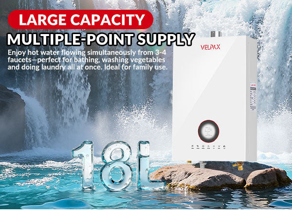 - 【Tankless Water Heater】- Propane Tankless Water Heater with Steady Temperature Control & Multiple Safety Protections (Flame Failure Device, Anti-Freezing Protection, Overheating Protection). Only 3.6PSI water pressure required, outputs 4.76 gallons of hot water per minute, maximum temperature raise up to 75°C. Applicable exclusively to Propane (LPG).
